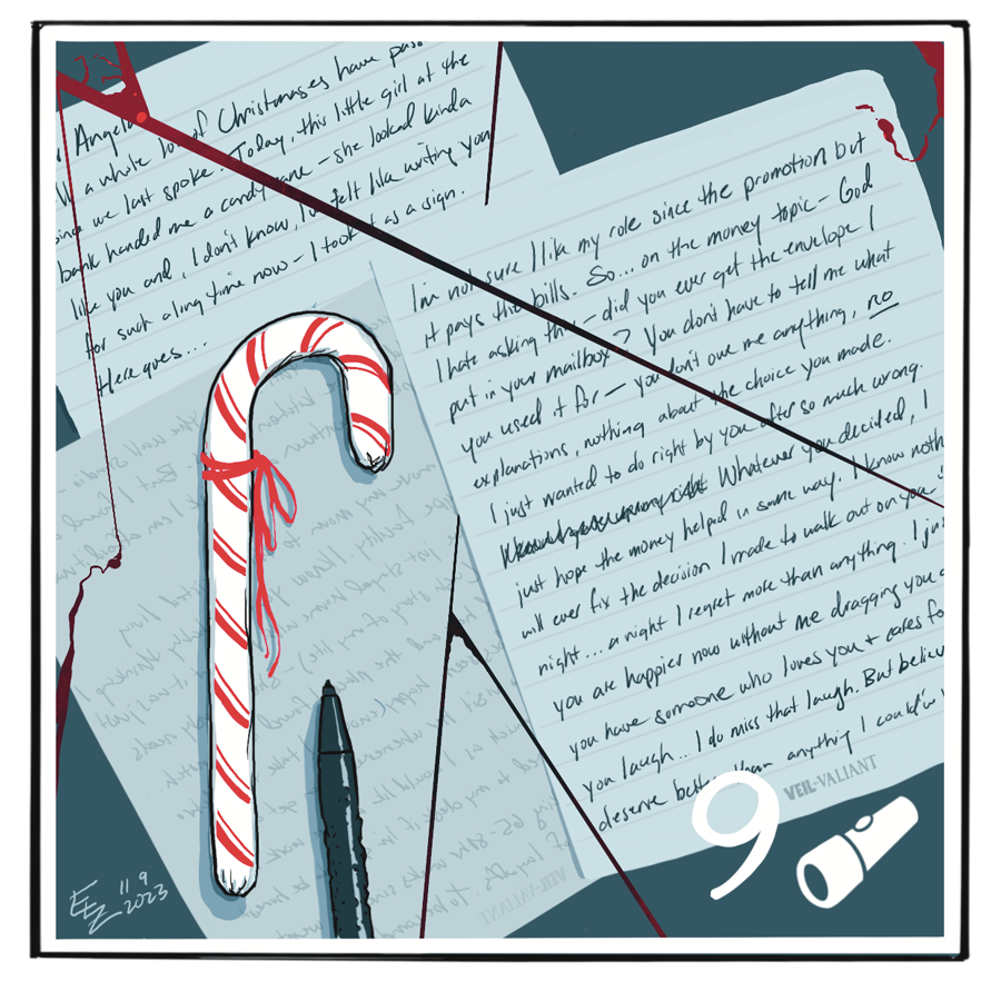 Panel 29/30’s letters are prominently featured in Tarot 06 | The Broken. 29’s upside-down barely legible page hints at what’s up with Toby’s mom these days.