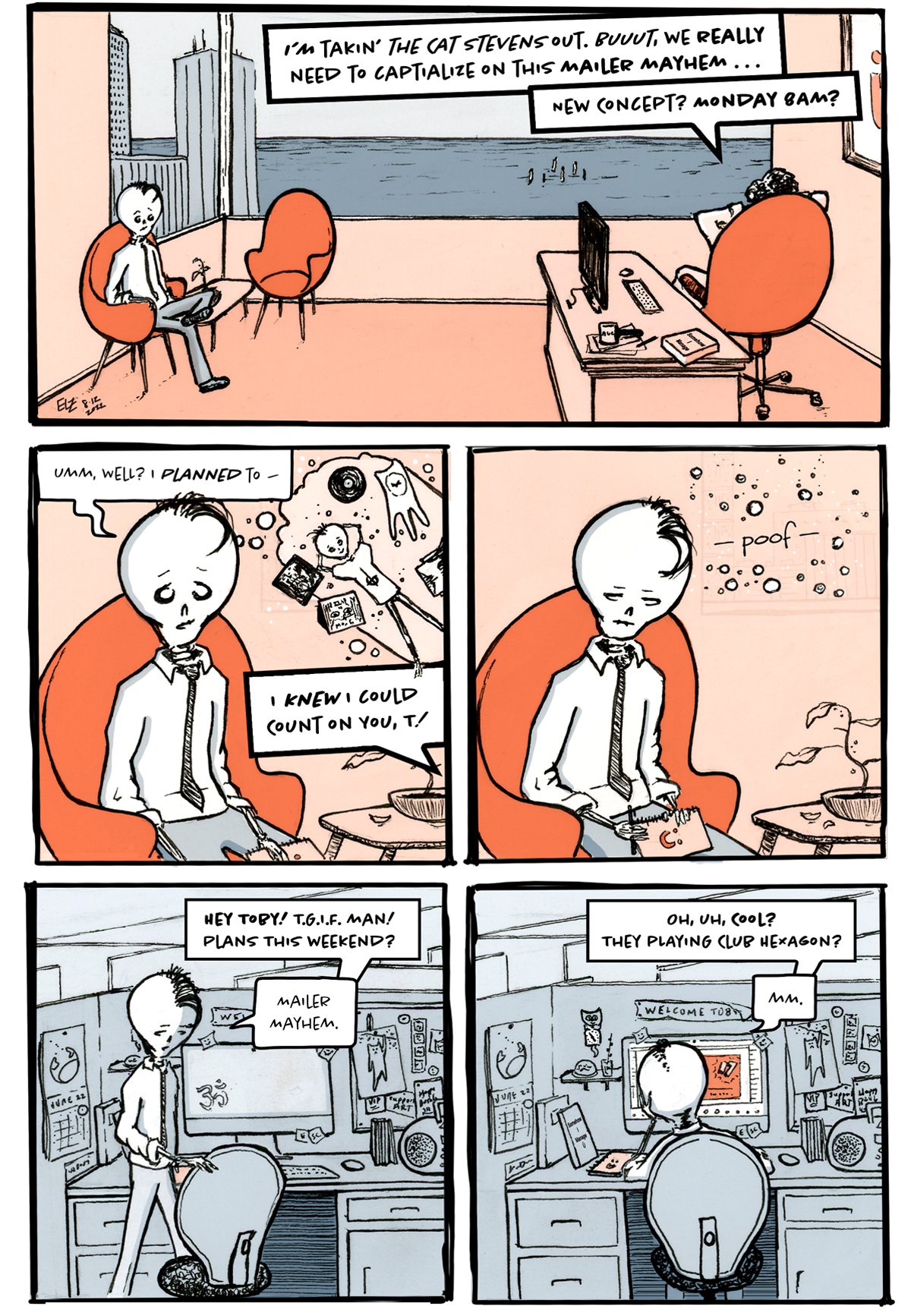 This is our first peek into Nüch, Toby’s place of employment. It’s all admittedly very The Office/Space (minus rabid bats and a Swingline), and a home-away-from-home I know oh-so well.